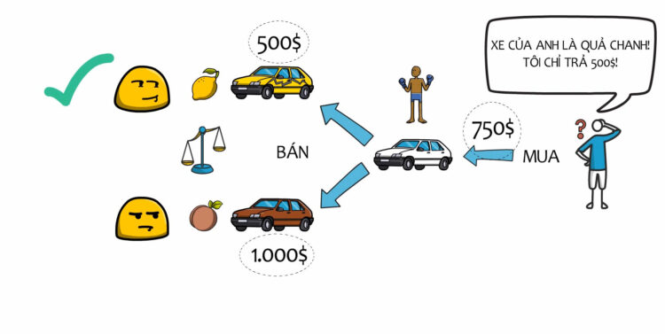 Một ví dụ kinh điển về bất cân xứng thông tin là hiện tượng lựa chọn đối nghịch. Trong thị trường xe hơi cũ, người bán biết rõ về chất lượng xe của mình hơn người mua. Nếu người mua không thể phân biệt được xe “quả chanh” (chất lượng thấp) và xe “quả đào” (chất lượng tốt), họ sẽ trả giá trung bình cho cả hai loại xe. Tuy nhiên, người bán xe chanh sẽ bán được xe với giá thấp hơn, trong khi xe đào không thể bán được. Kết quả là thị trường chỉ còn lại những chiếc xe chanh, làm giảm chất lượng trung bình của các giao dịch trên thị trường.